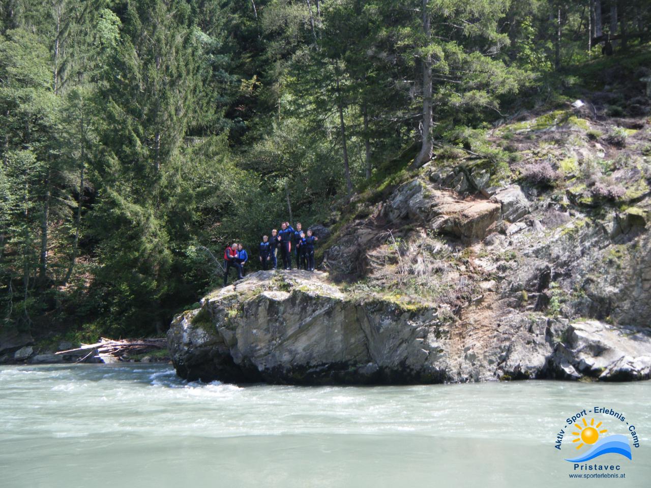 Unterwegs können besonders Mutige von einer 4 Meter hohen Brücke in die Fluten  der Möll springen  ( Je nach Wasserstand ) oder auf einen Felsen klettern und dann von bis zu 8 Metern Höhe in den Fluss springen -