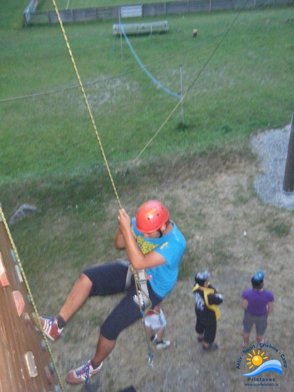 Hochseilgarten und Kletterwand: Ziel der Gruppenübungen ist es, nicht nur Anderen durch gegenseitiges Sichern zu vertrauen,